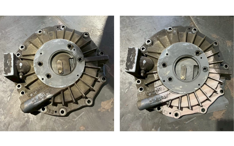 現場では油汚れやすす汚れが主な課題となっておりました。そのため、これらの付着物を効率的に除去できるかどうかを確認する目的でレーザークリーナーのデモを実施しました。